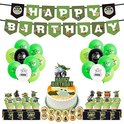 Baby Yoda Party Supplies 80 Pcs Party Decorations Banner Cupcake Toppers Stickers Chocolate Lables Balloons For Star Wars Theme Birthday Party Walmart Com